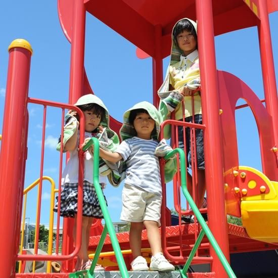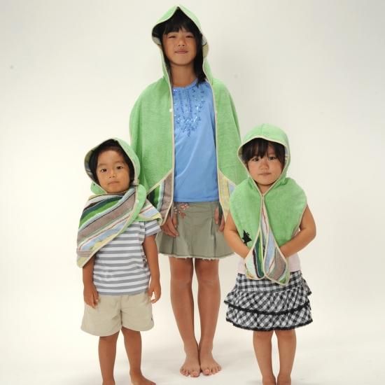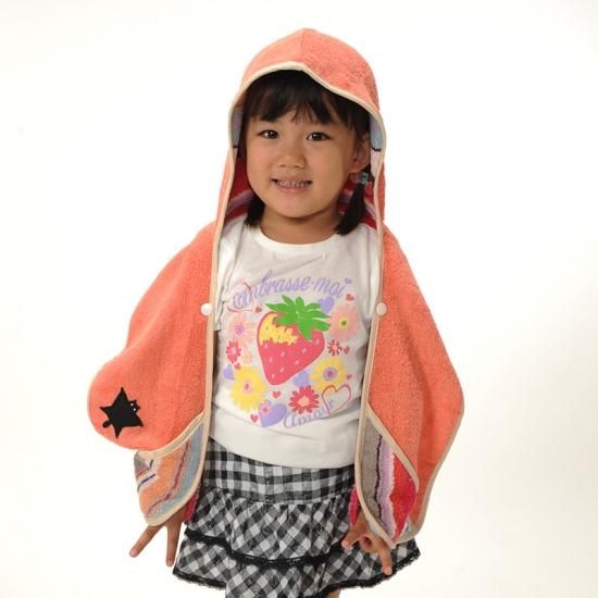 ゆったり大きめのフード付きのタオルだから、強い日差しからお子様を守ります。