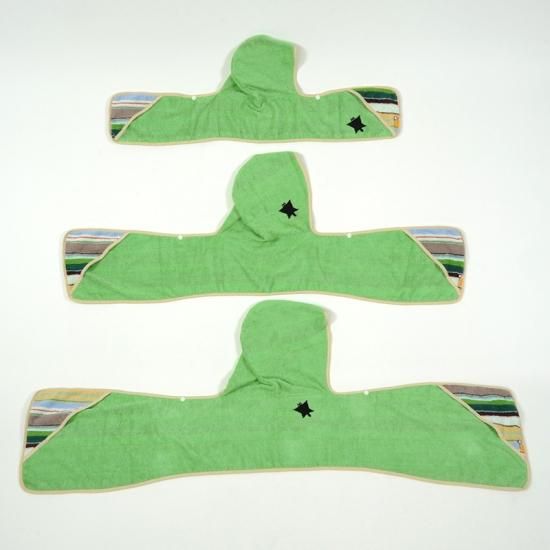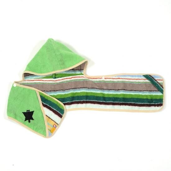 カラフルなマルチストライプ柄が可愛い、フード付きタオルMUSASABI/MOMONGAシリーズ。
